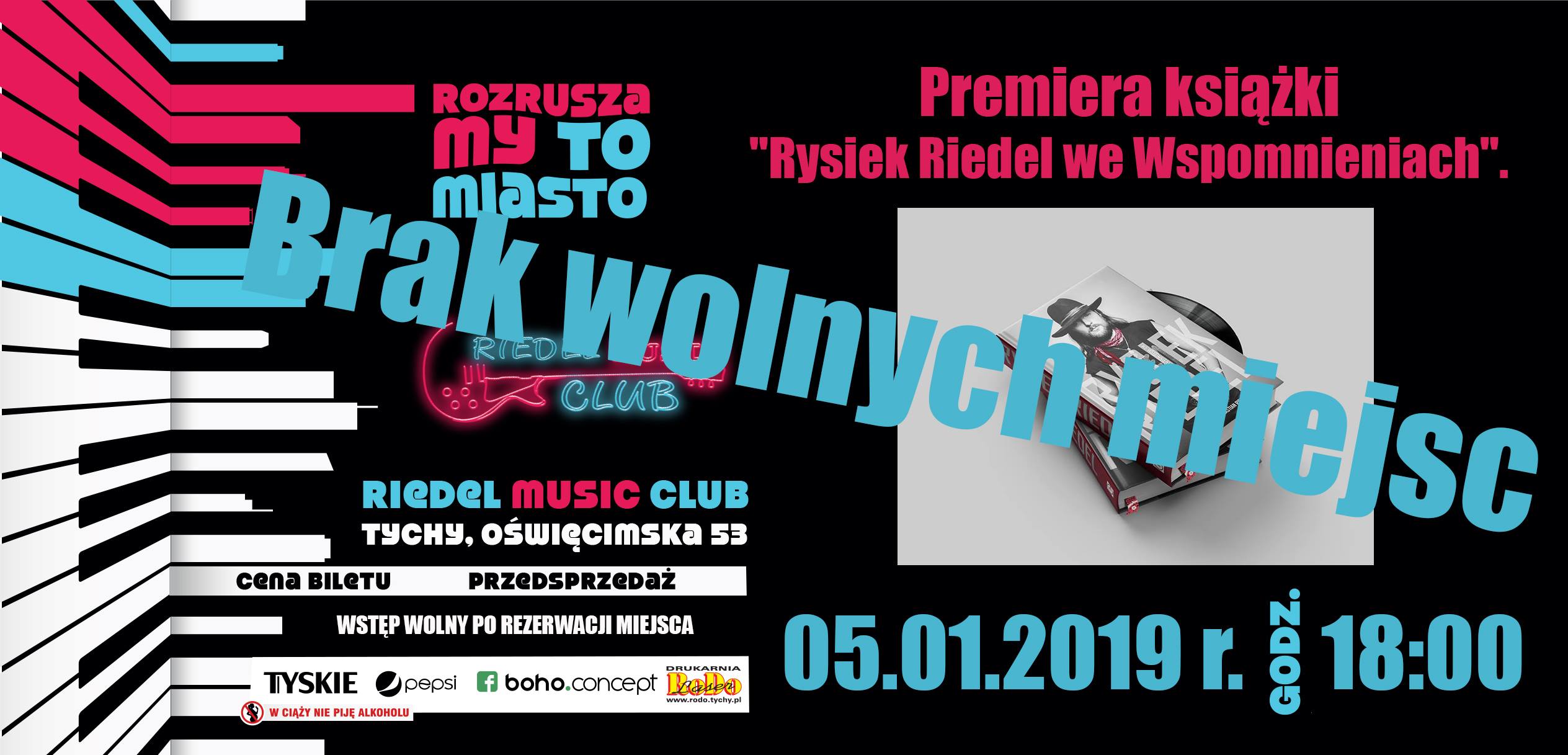 Serdecznie zapraszamy 5 stycznia 2019 roku o godz. 18:00 do Riedel Music Club w Tychach na uroczystą Premierę książki "Rysiek Riedel we Wspomnieniach".