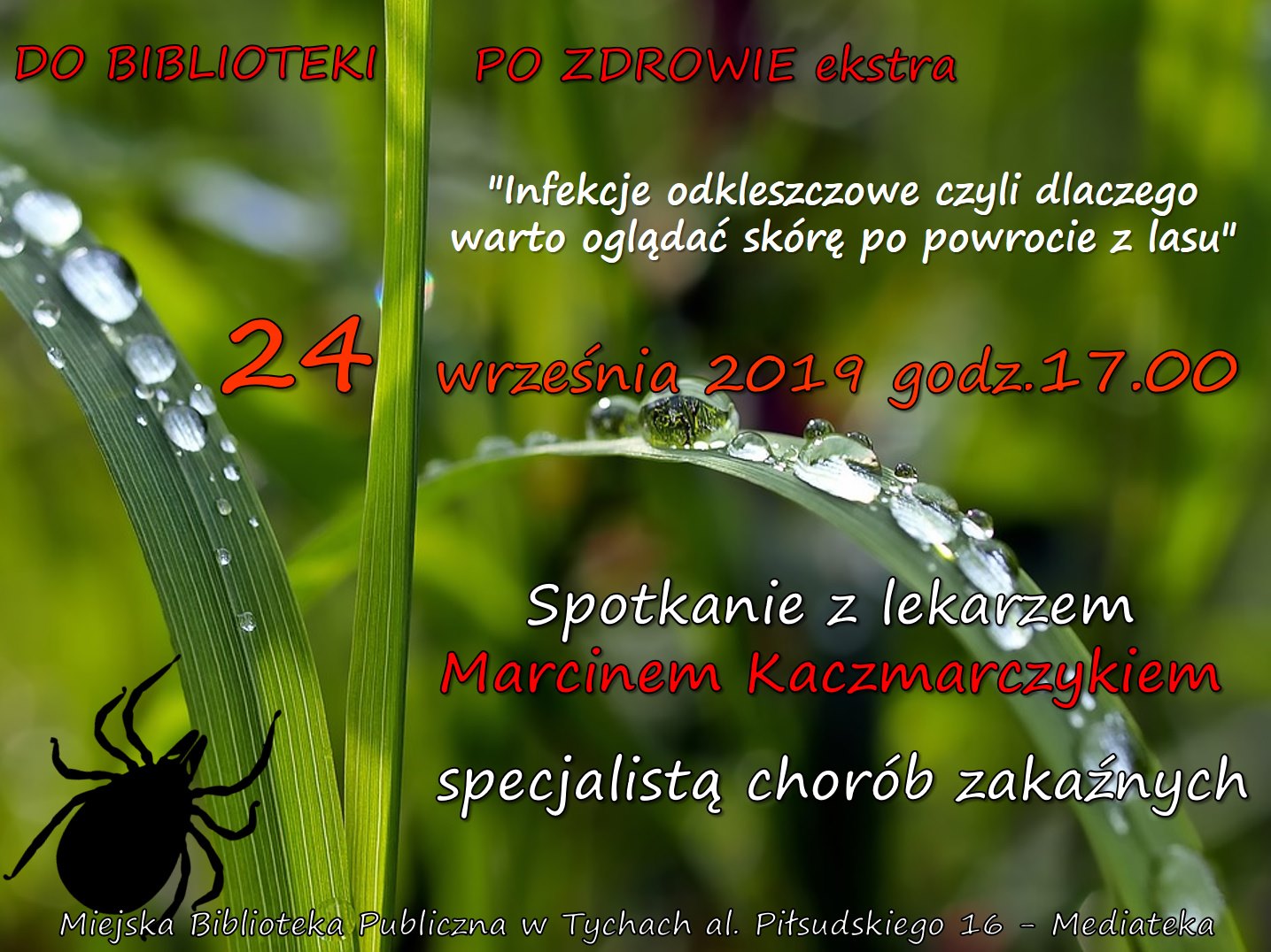 "Infekcje odkleszczowe czyli dlaczego warto oglądać skórę po powrocie z lasu" - wykład poprowadzi lekarz Marcin Kaczmarczyk, specjalista chorób zakaźnych.