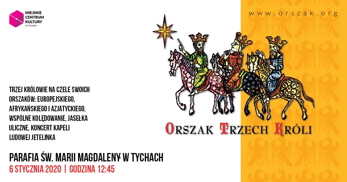 6 stycznia 2020, jak w wielu polskich miastach, po raz kolejny wyruszymy w Orszaku spod kościoła pw. św. Marii Magdaleny w Tychach, skąd ulicami Miasto Tychy poprowadzą nas Trzej Królowie.