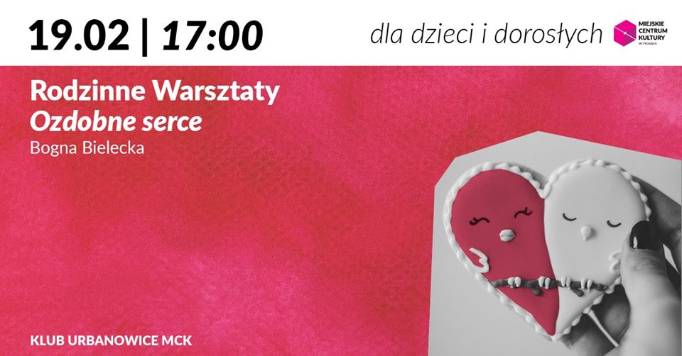 Klub Urbanowice MCK zaprasza 19 lutego na Rodzinne Warsztaty Ozdobne serce. Nożyczki, klej, trochebiuły, cekinek i kokartka! Tak u nas tworzy się niesamowite dzieło. Nie ma to jak z najbliższymi wspólnie wykonać walentynkowe serce.