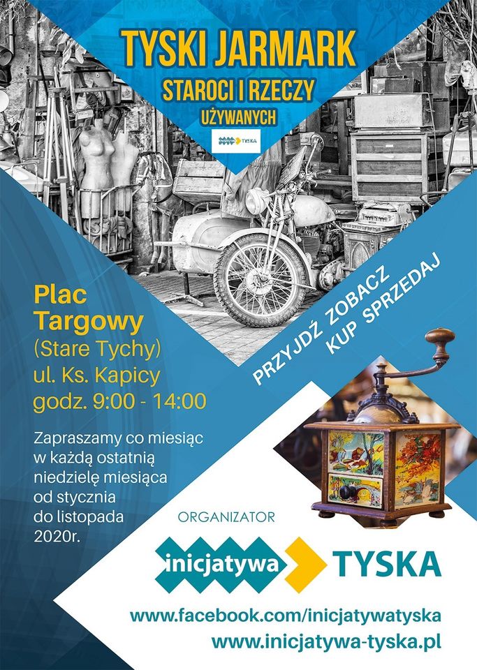Serdecznie zapraszamy na nasz kolejny Jarmark Staroci i Rzeczy Używanych. Spotykamy się w najbliższą niedzielę 30.08.2020r. na placu targowym na Starych Tychach - 9.00-14.00.