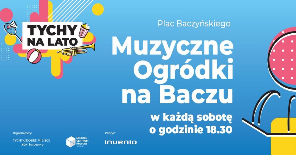 Latem powracamy na Plac Baczyńskiego!! Tyszanie lubią spędzać wolny czas na Placu Baczyńskiego - a entuzjazm, z jakim przyjęto inaugurację Muzycznych Ogródków z Acoustic Quartet jeszcze bardziej utwierdza nas w przekonaniu, że to miejsce jest najpiękniejsze, gdy latem tętni życiem! Dlatego w ramach miejskiej akcji TYCHY NA LATO zapraszamy na cykliczne muzyczne soboty na Placu Baczyńskiego. Muzyczne Ogródki na Baczu - w każdą sobotę miesiąca od 18.30 (wyjątek stanowi sobota 14 sierpnia, gdy nieco później zaprosimy na spotkanie z Teatrem) będziemy czekać z muzyczną niespodzianką, która z pewnością umili Twój czas spędzany w pobliżu fontanny-dmuchawca. Kogo usłyszymy? Łap harmonogram: