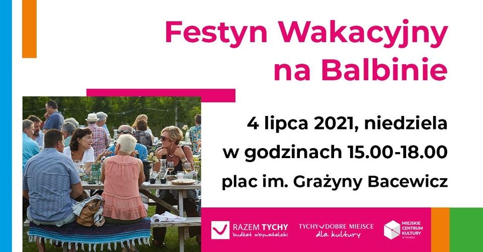 Udział w wydarzeniu jest jednoznaczny z akceptacją regulaminu imprez dostępnego na www.kultura.tychy.pl Festyn organizowany jest w ramach Budżetu Obywatelskiego dla Miasta Tychy na rok 2021