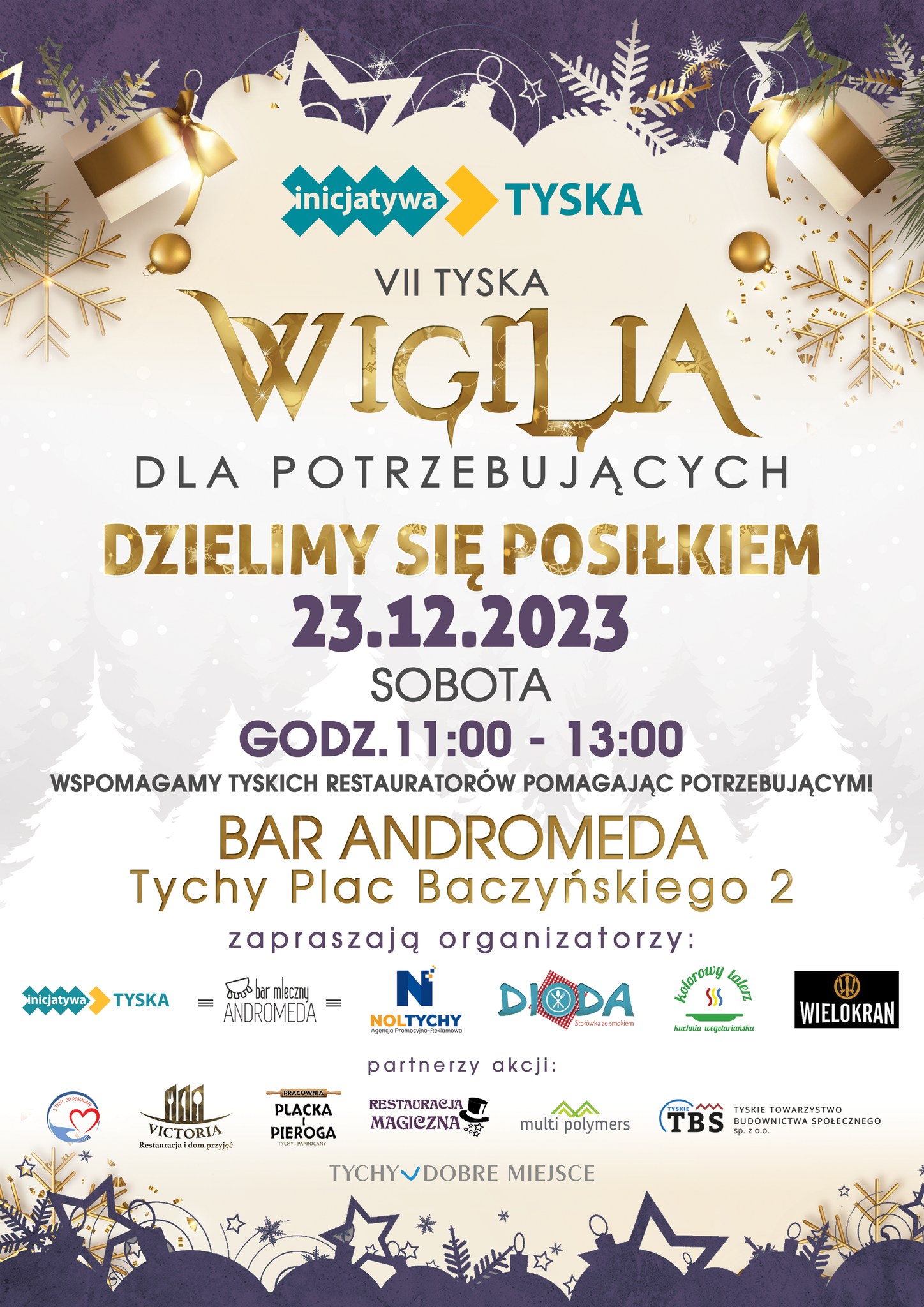 Zapraszamy na VII Tyską Wigilię Dla Potrzebujących w Barze Mlecznym Andromeda! Data: 23 grudnia