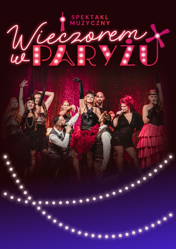 „Wieczorem w Paryżu” To spotkanie z Paryżem pełnym magii, namiętności i wiecznie żywych historii. Zanurz się w świecie, gdzie puls miasta budzi się po zmroku, a każda nuta przesiąka pragnieniami sprzed lat. Znakomici artyści Głosami paryskiej nocy są wspaniali artyści. W główną postać wcielają się polskie aktorki teatralne, m.in. Magdalena Smuk oraz Agnieszka Castellanos-Pawlak, które na co dzień można podziwiać na deskach Teatru Muzycznego w Gdyni czy Teatru Dramatycznego w Koszalinie. To właśnie one wraz z wybitnymi solistami i parą utalentowanych tancerzy przeniosą publiczność do świata kabaretów i klasycznych francuskich melodii. Tej nocy Paryż zaśpiewa dla Ciebie – i nie pozwoli o sobie zapomnieć.