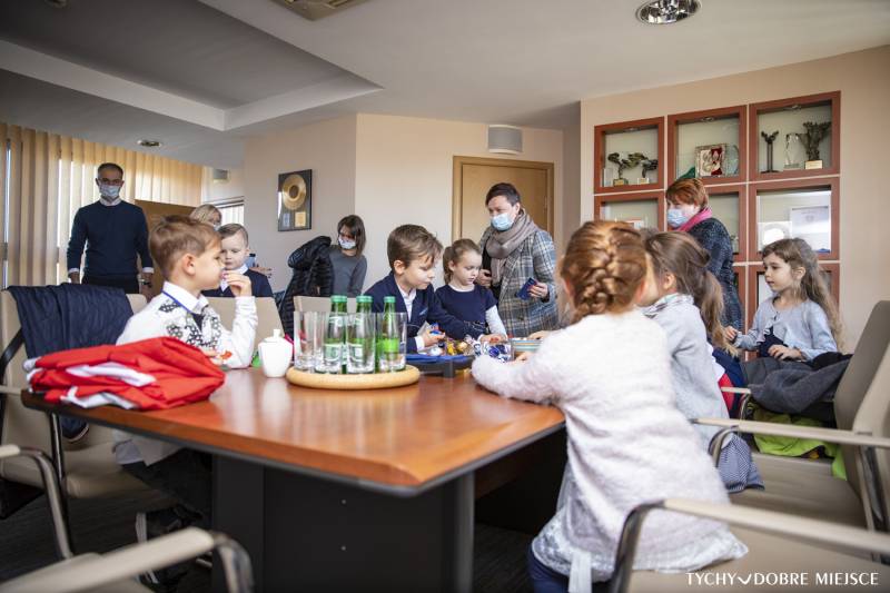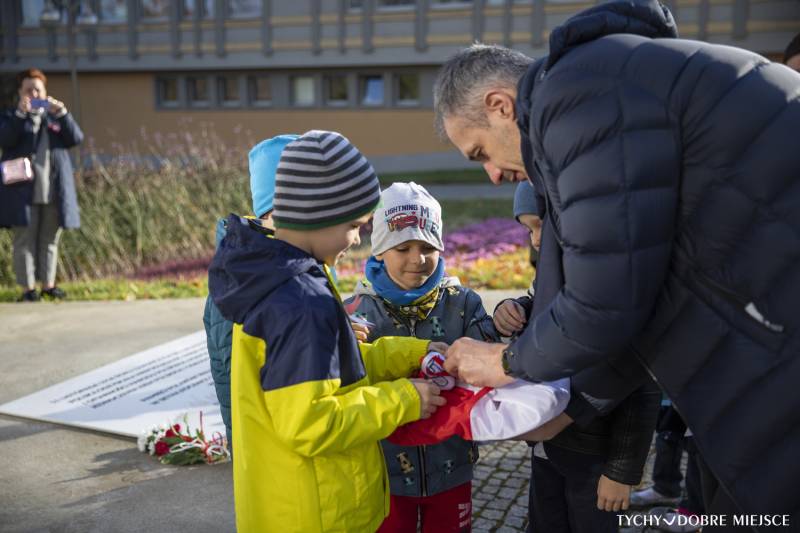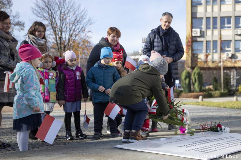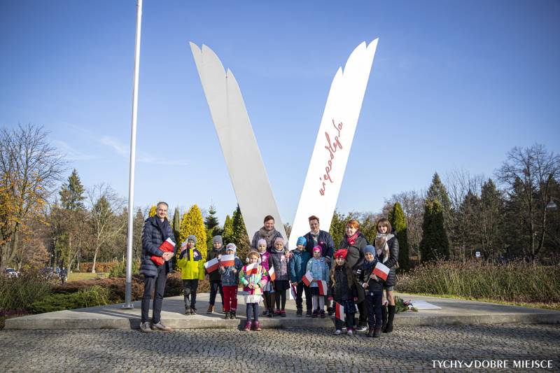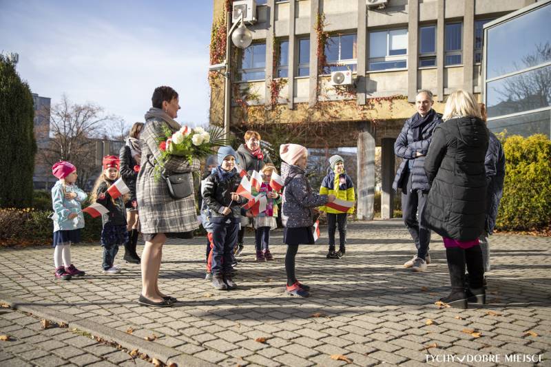 10 listopada także grupa 6-latków z Przedszkola ABC w Tychach złożyła kwiaty przed pomnikiem oraz odwiedziła Urząd Miasta Tychy. Przedszkolaki do urzędu przyniosły własnoręcznie uszytą, biało - czerwoną flagę. Spotkały się też z wiceprezydentem Maciejem Gramatyką.