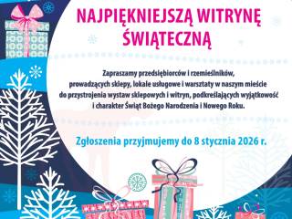 Zachęcamy przedsiębiorców i rzemieślników, którzy prowadzą punkty handlowe lub usługowe w naszym mieście do przystrojenia wystaw sklepowych i witryn, podkreślających wyjątkowość i charakter Świąt Bożego Narodzenia i Nowego Roku.