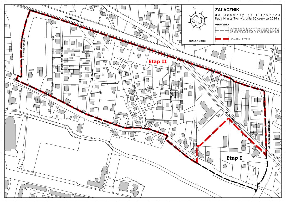 Miasto rozpoczyna prace nad drugim etapem miejscowego planu zagospodarowania przestrzennego dla obszaru w rejonie ulic: Mikołowskiej, Bpa. Burschego, Damrota i Asnyka. Przystąpienie do sporządzenia planu zainicjowane zostało Uchwałą Nr III/57/24 z dnia 20 czerwca 2024 r.