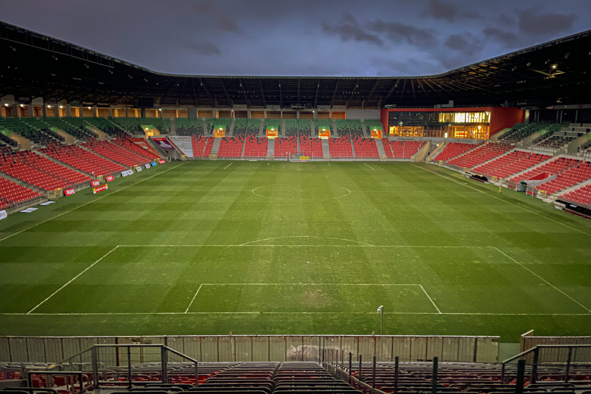 Stadion Miejski i Tyska Galeria Sportu wieczorową porą